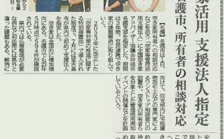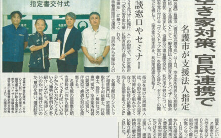 2025年10月4日の琉球新報社に、一般社団法人全国空き家アドバイザー協議会沖縄県名護支部が、沖縄県名護市より「空家等管理活動支援法人」に指定されたことについて掲載されました。...