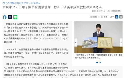 2025年12月10日の朝日新聞に、当法人が主催して開催した「古民家フォト甲子園」の表彰について放映いただきました。 記事はこちらよりご覧いただけます。 https://www.asahi.com/articles/AS...