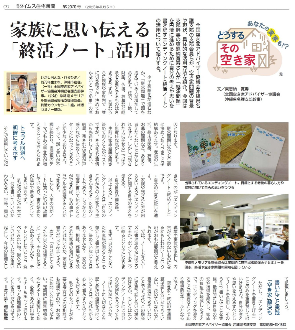 「継承問題」を円滑に進める為に「終活ノート」の活用についての記事を掲載いただきました。