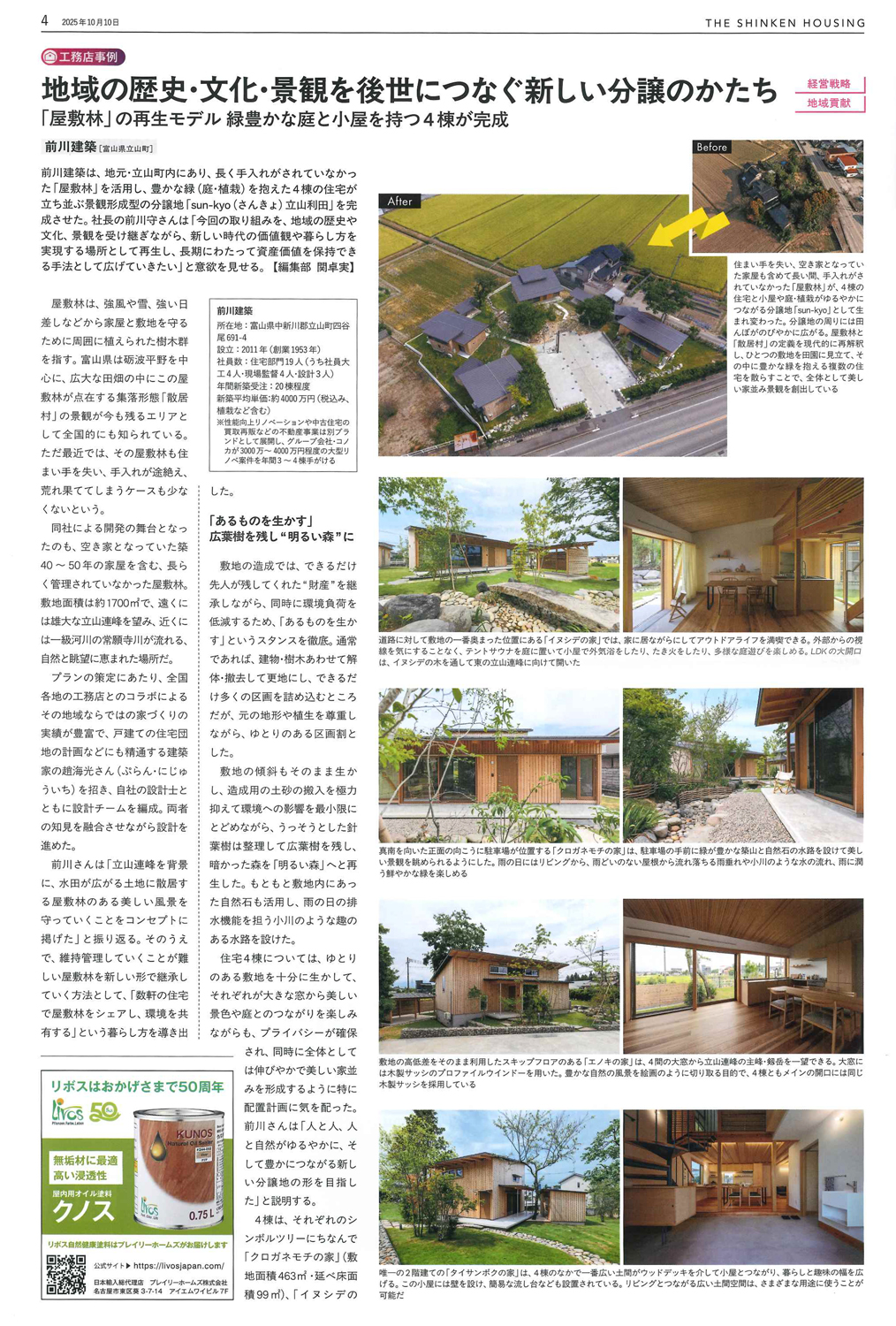 新建ハウジングに掲載いただきました。 2025年10月10日発行の『新建ハウジング』において、一般社団法人全国古民家再生協会富山第一支部会員企業・木の香 株式会社前川建築の取り組みが紹介されました。 メディア掲載カテゴリーの記事