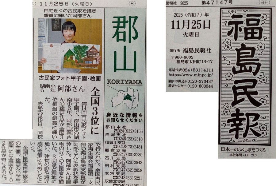 2025年11月25日の福島民報に、当法人が主催して開催した「古民家フォト甲子園」の表彰について掲載いただきました。
