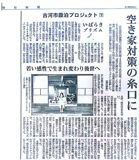 2025年11月29日付の毎日新聞に、茨城第一支部による古河市の農泊プロジェクト「Kominka 翠sui」が紹介されました。