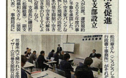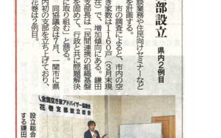 2025年9月19日 岩手日報に、全国空き家アドバイザー協議会の花巻支部が設立されたことを掲載いただきました。 ※画像をクリックするとPDF表示で閲覧できます。...
