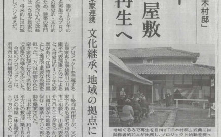 2026年3月17日の四国新聞に、香川第一支部がおこなう「旧木村邸」の改修プロジェクトについて掲載いただきました。 「旧木村邸」は築約150年とみられる古民家で、さぬき民家伝統工法伝承館として再生し3年後のオープンを目指...